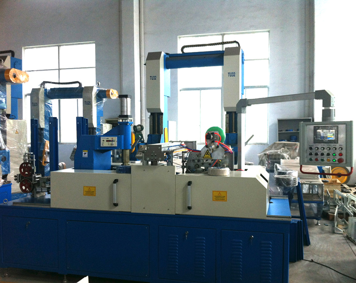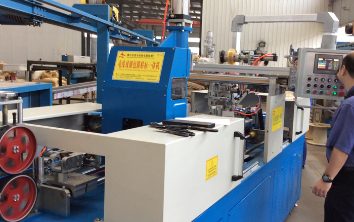 整機(jī)由張力器、計(jì)米器、送線器、剪線裝置、繞線頭、伺服排位裝置、包線輸送裝置、自動(dòng)貼標(biāo)簽裝置及自動(dòng)包膜器組成。